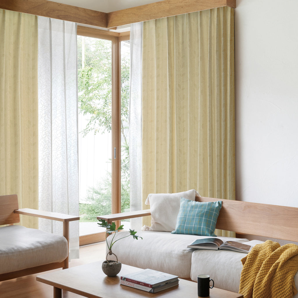 ヒダ山を3つ取り、レール寸法に対して約2倍の生地を使用します。ゆったりとした曲線の美しいドレープが高級感を演出します。生地の重なりが多いため、保温性が上がります。