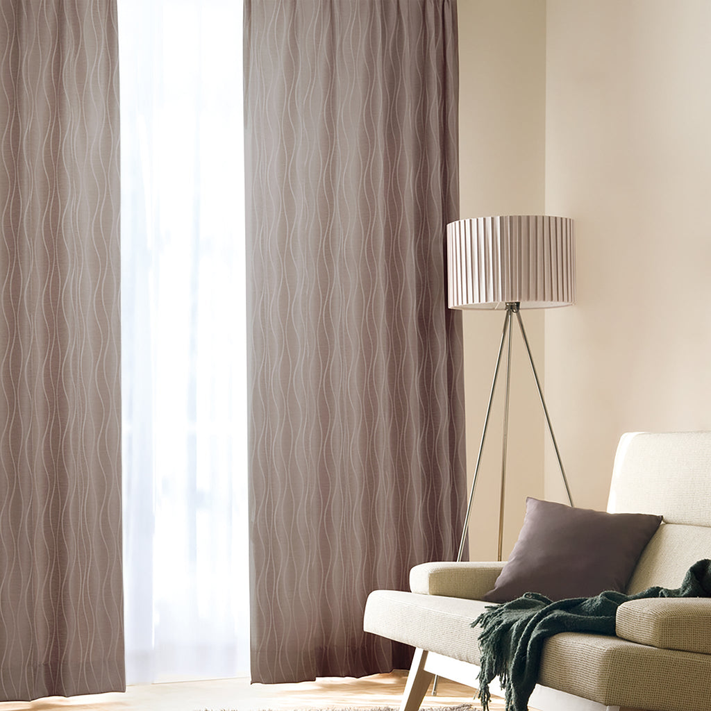 ヒダ山を3つ取り、レール寸法に対して約2倍の生地を使用します。ゆったりとした曲線の美しいドレープが高級感を演出します。生地の重なりが多いため、保温性が上がります。