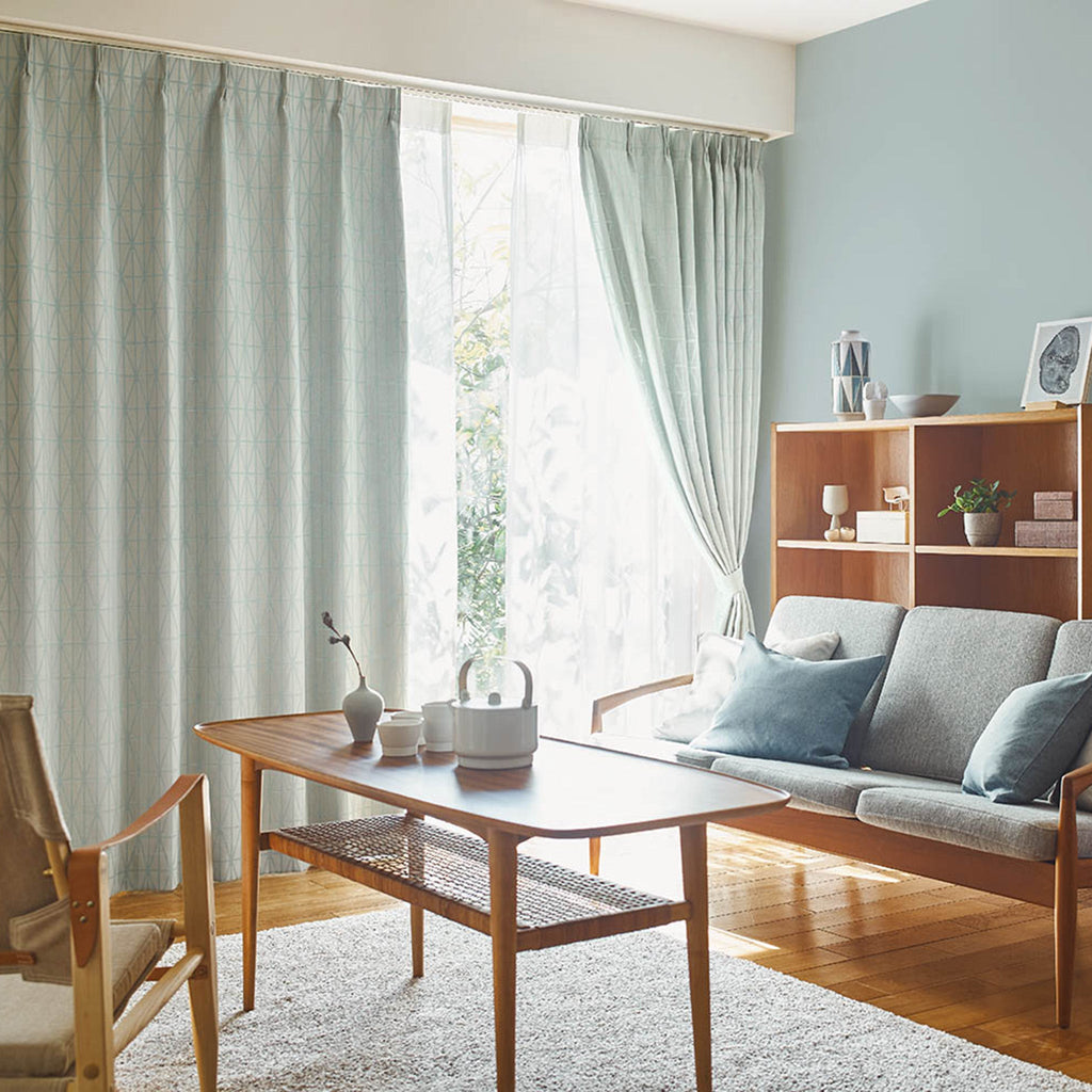 ヒダ山を2つ取り、レール寸法に対して約1.5倍の生地を使用します。すっきりとしたウェーブで、大きな柄デザインを引き立てます。ドレープが深すぎないのですっきりした窓辺になります。