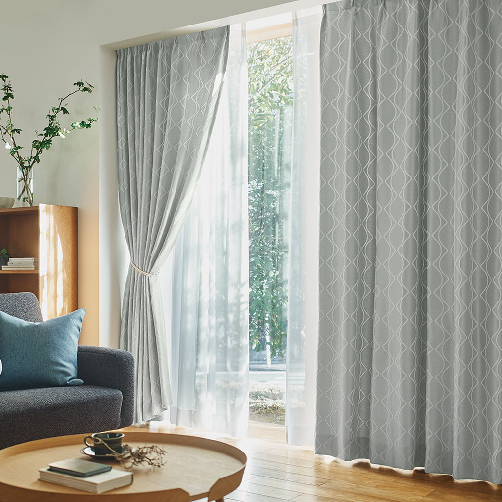 ラインで描かれたシンプルな幾何柄。リビングから寝室まで幅広く使えます。