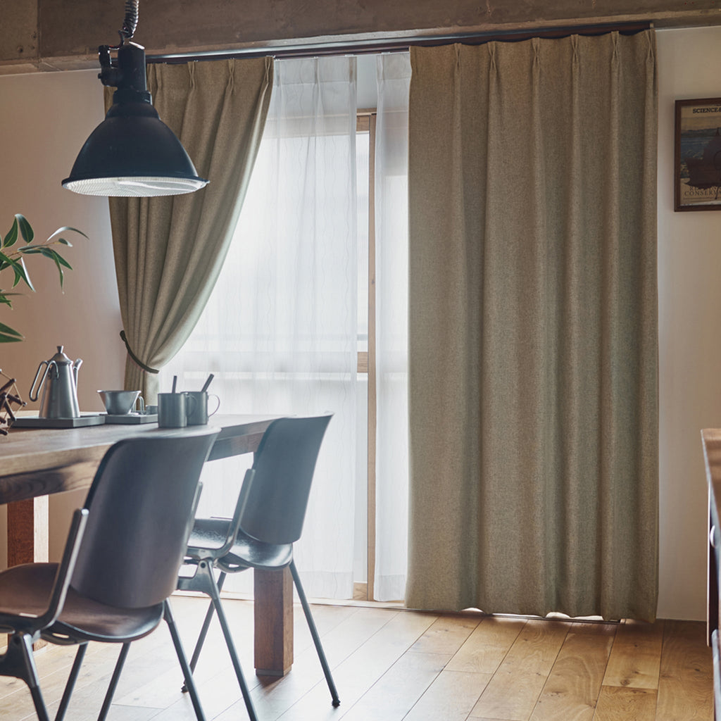 ざっくりとした表情の無地遮光。ナチュラルモダンなインテリアにおすすめです。
