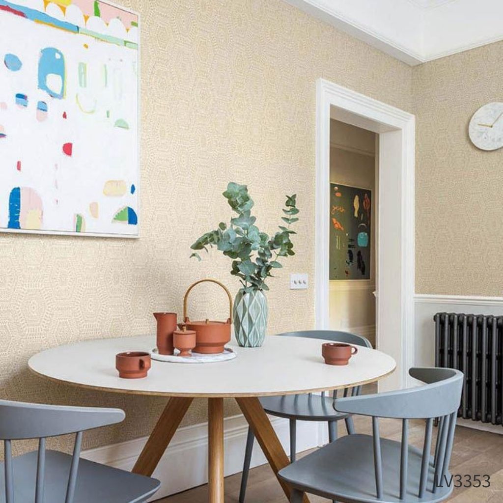 LV3353を取り入れたお部屋です。壁紙が空間になじみやすいため、シンプルな幾何学模様のポスターなどを取り入れても騒がしくない印象になっています。