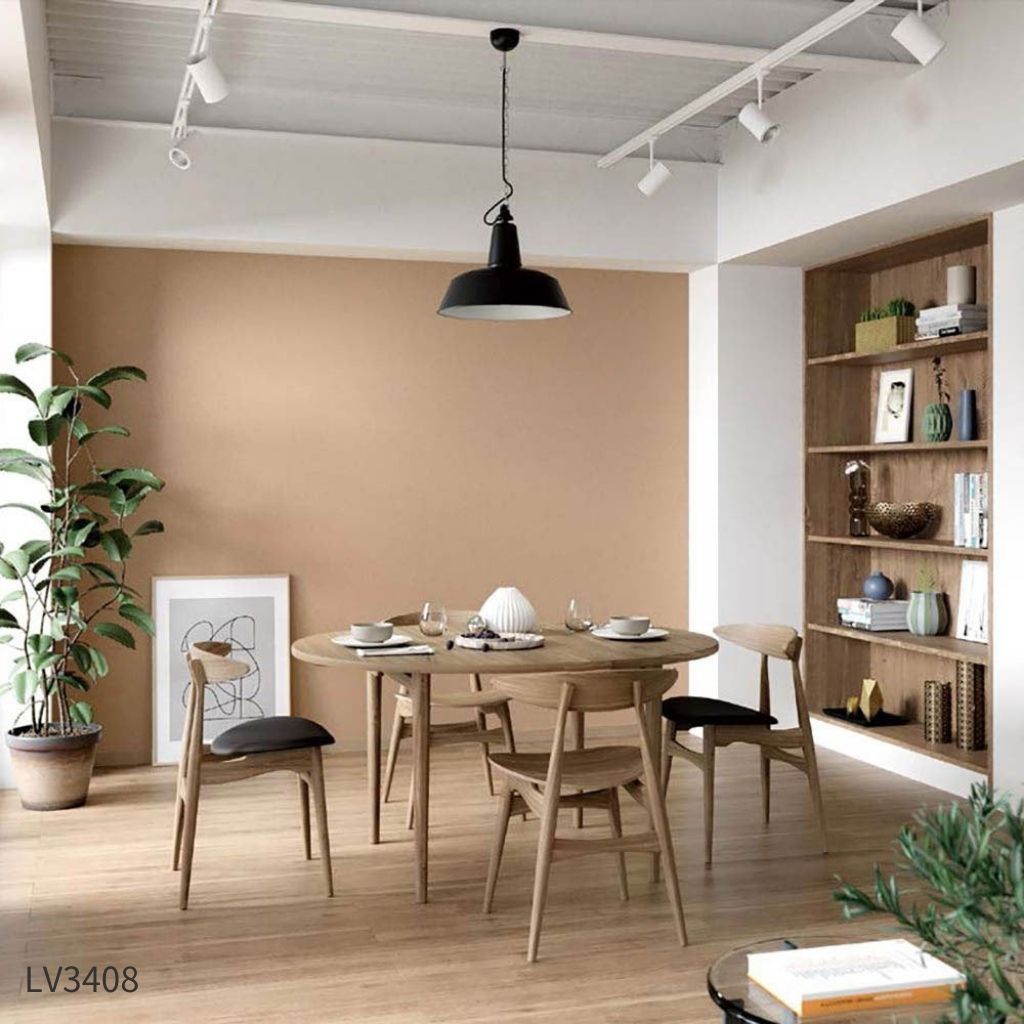 ブラウン(LV3408)は、フローリングや木目調家具のカラーと合わせやすく、統一感のある空間を演出します。和紙調のクロスですが、洋室に取り入れることもできます。