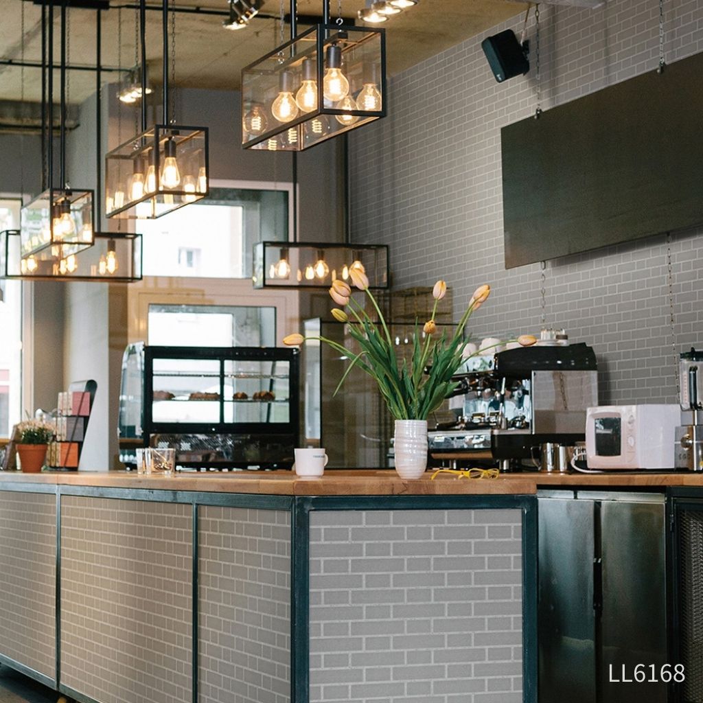 サブウェイタイルのツヤっとした質感がおしゃれな壁紙です。