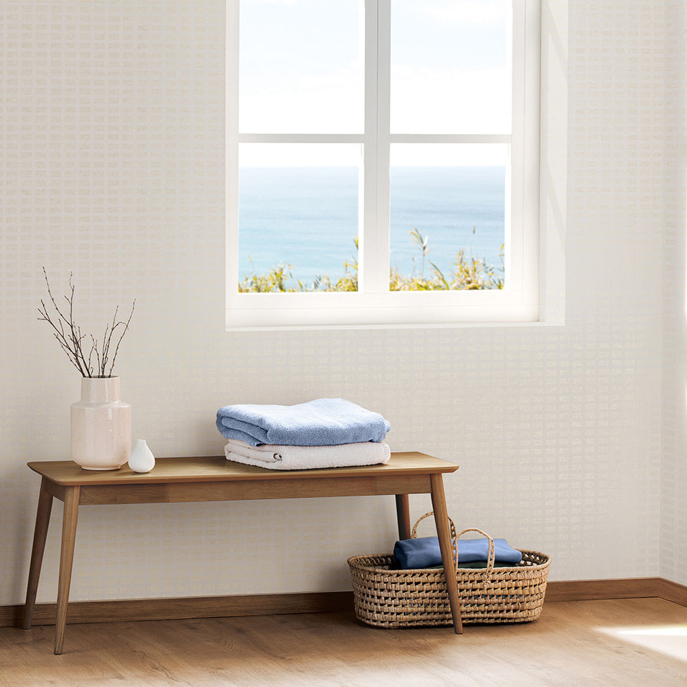 ブロック柄の消臭・汚れ防止機能付き壁紙です。